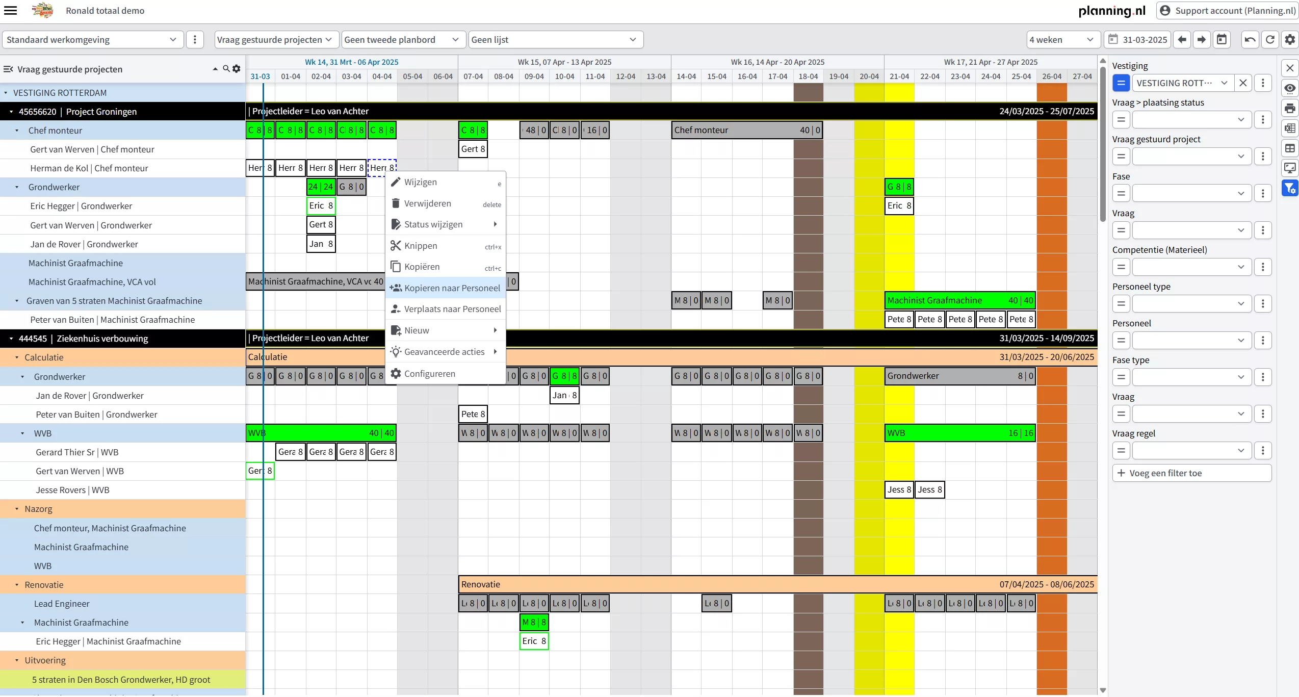 Planning.nl offers a complete planning tool that allows you to combine project planning and resource planning on a single planning board. We develop our software ourselves, and it runs on our own hardware from data centres in the Netherlands.